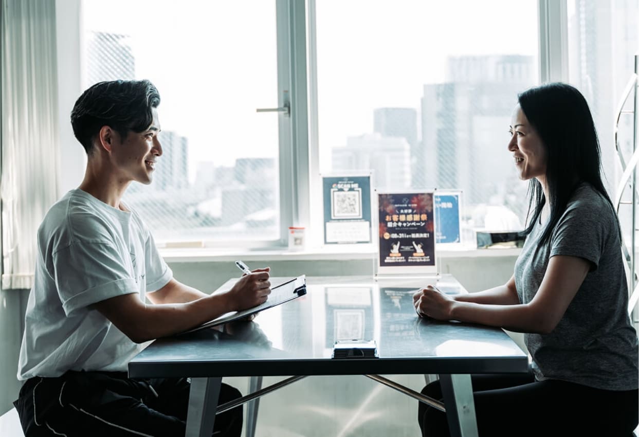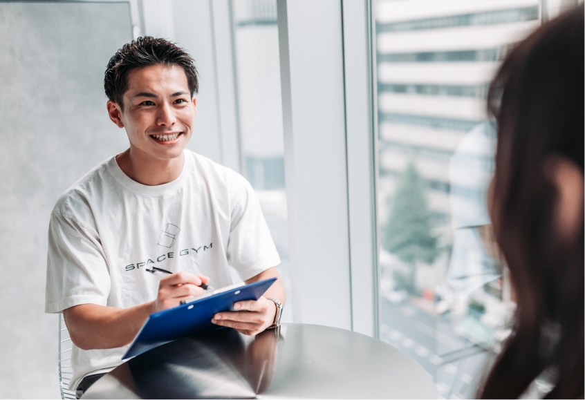 目標達成まで継続できるよう、トレーナーが定期的なフィードバックと丁寧なコミュニケーションでモチベーション維持をサポート。小さな変化や成果もしっかり共有し、自信へとつなげます。一人では続けにくいトレーニングも、伴走型のサポート体制で前向きに取り組める環境を整えています。